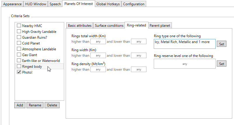 The icon for Planets of Interest is now also shown in the route and surroundings view. A tooltip shows details on planets and criteria sets.