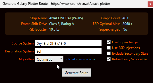 The import of Spanh's Galaxy Route Plotter files has been replaced by a route generator.